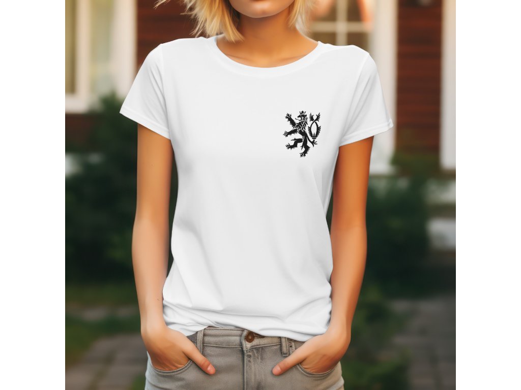 Motiv je proveden v jedné barvě, která na podkladu vytváří ostrý a elegantní kontrast. Lev je zobrazen jako heraldický dvouocasý lev ve skoku s korunou. Díky své menší velikosti a umístění působí motiv velmi decentně a nenápadně, a přitom je jasným vyjádřením hrdosti. Tričko je univerzální a hodí se pro každodenní nošení, kde chcete s jemnou elegancí a stylem ukázat svůj vztah k České republice.