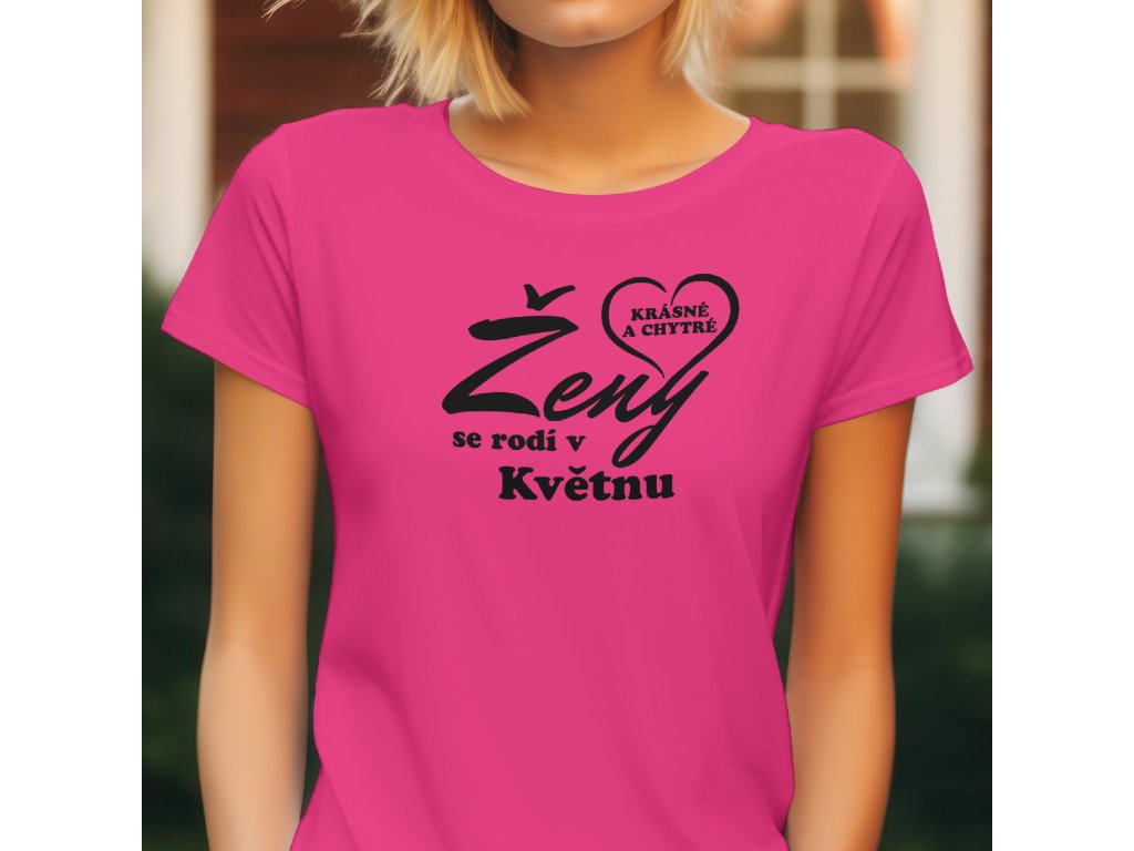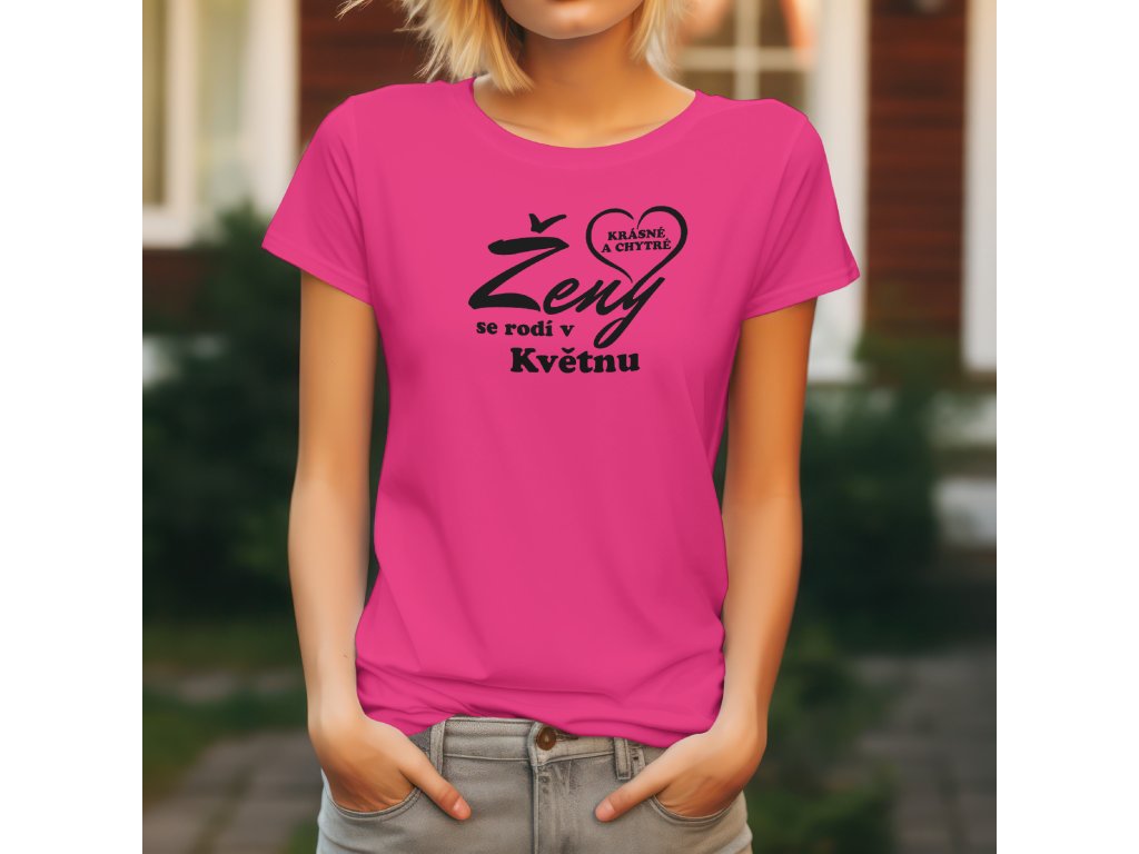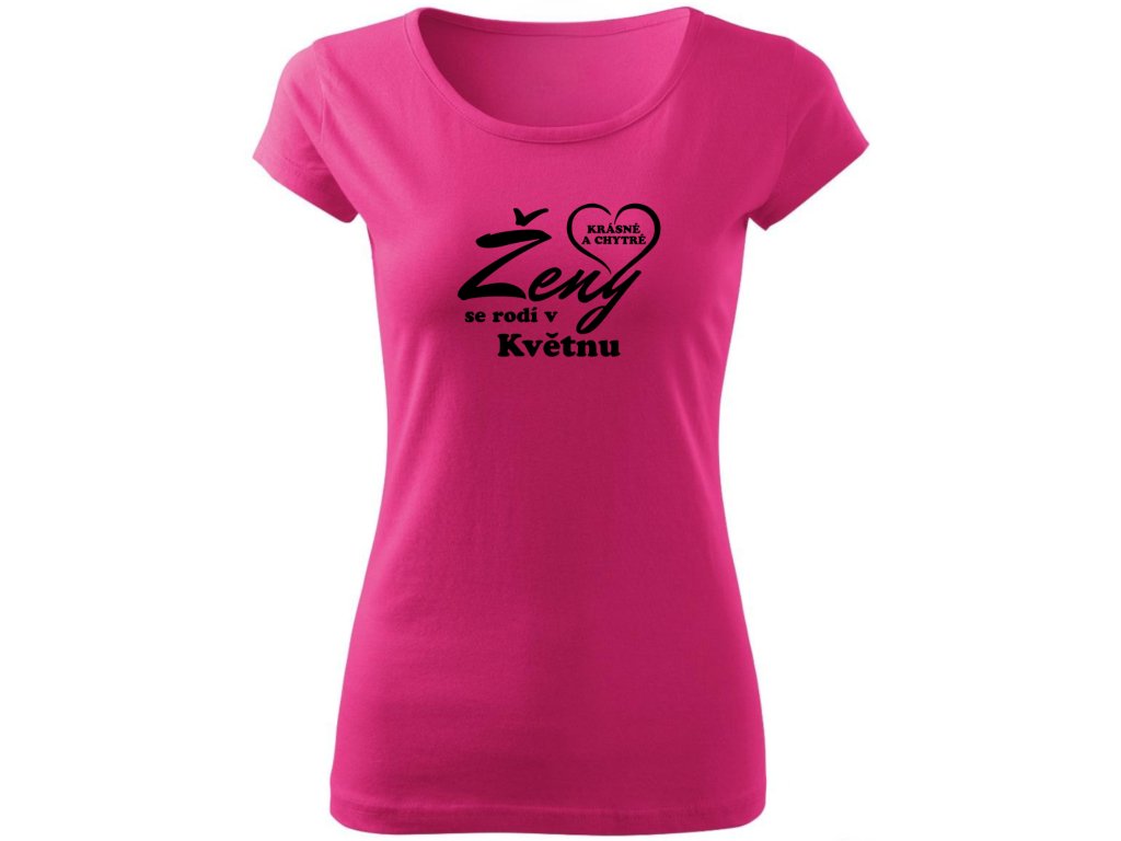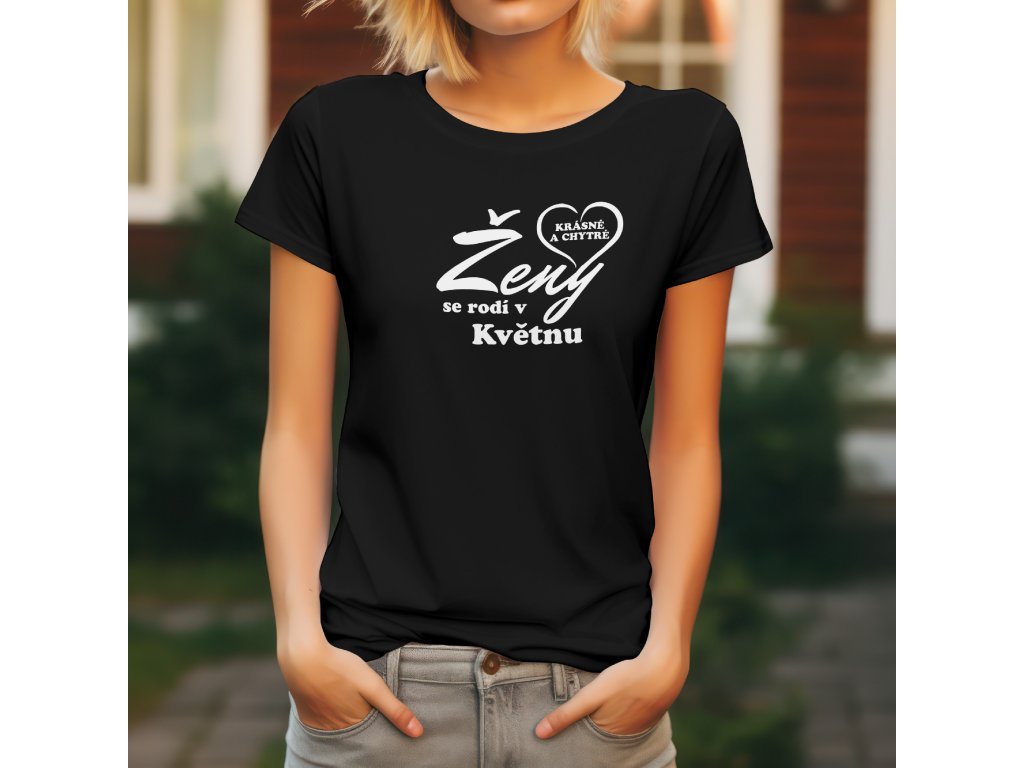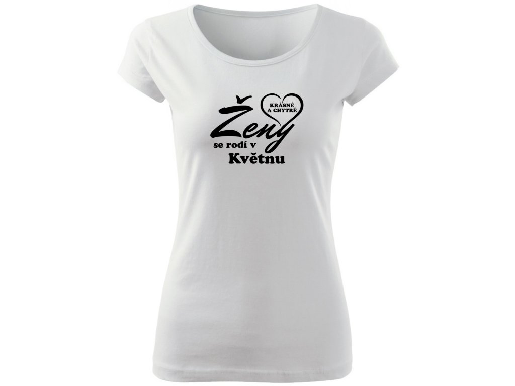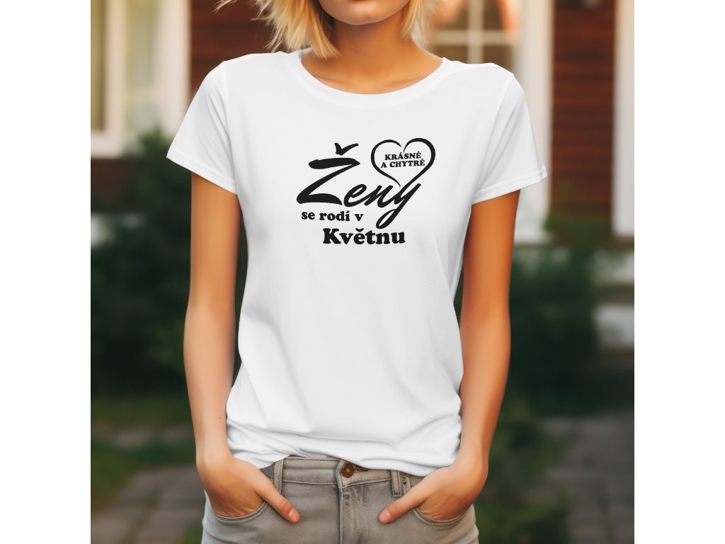 Dominantou trička je velký, dynamický nápis "Ženy" (barva textu kontrastuje s barvou trička), který je doplněn menším, tučným textem "se rodí v [Váš Měsíc]".