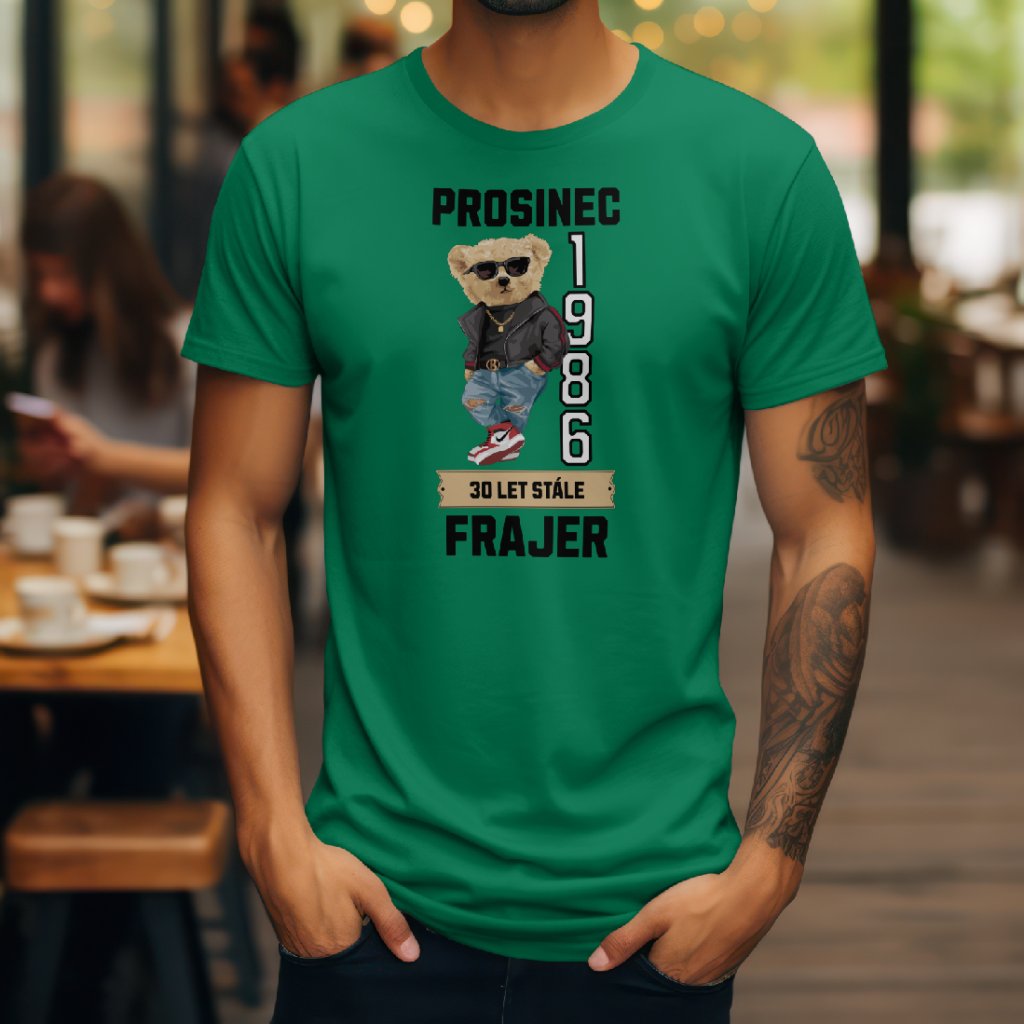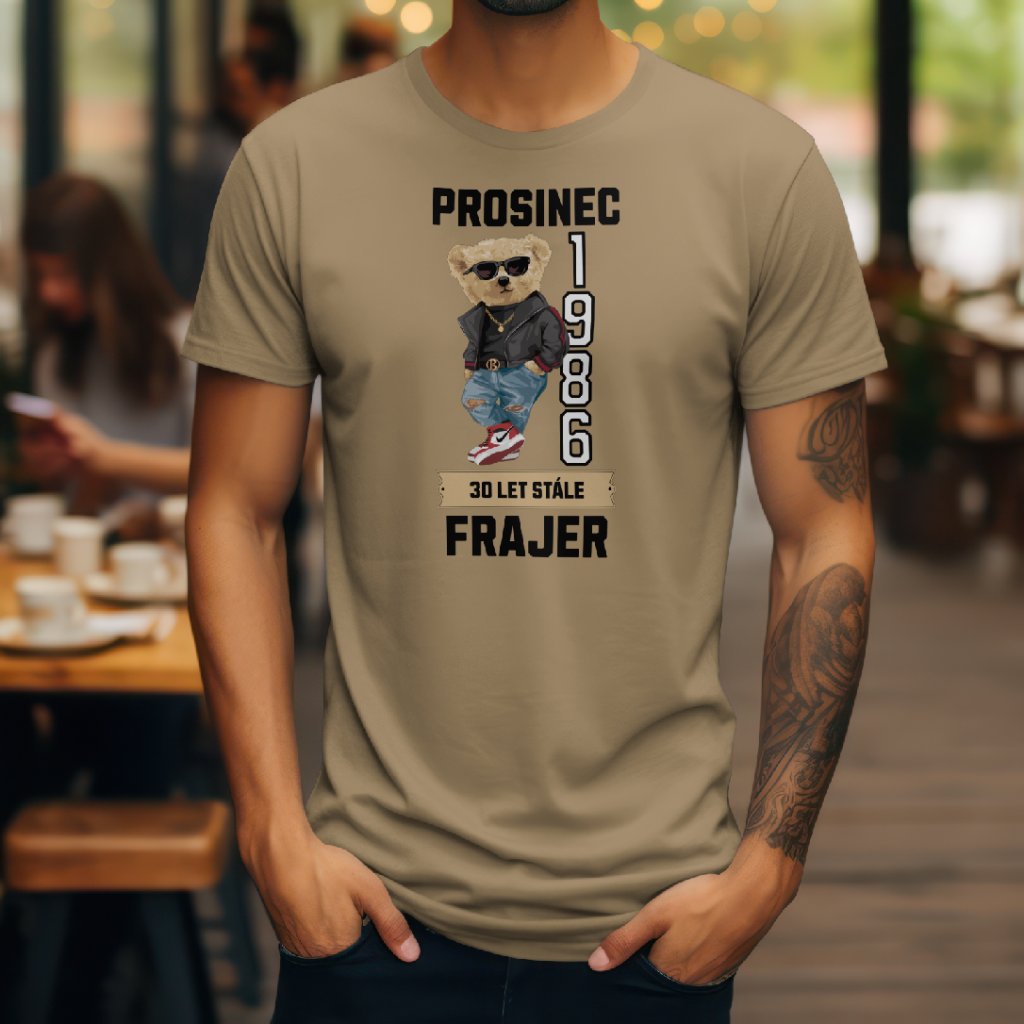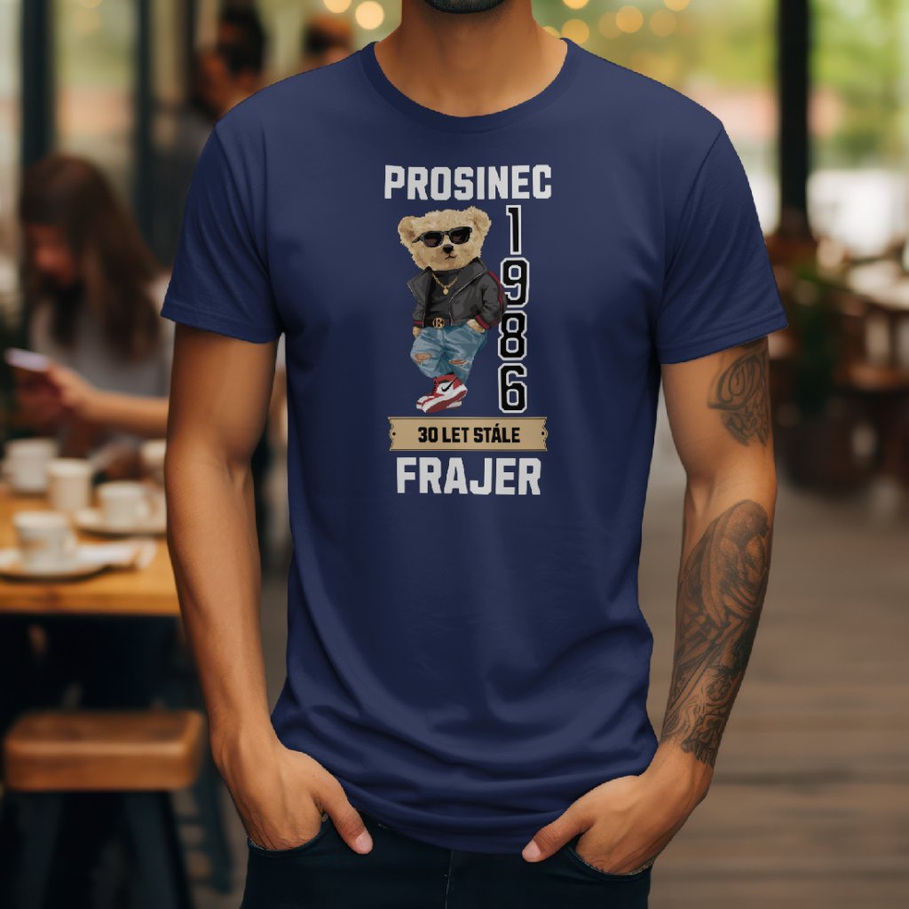 Ukažte všem, kdo je tady skutečný frajer! Toto unikátní pánské narozeninové tričko s motivem stylového medvídka v kůži je ideálním dárkem pro muže, kteří neztrácejí šmrnc ani s přibývajícími lety. Díky možnosti personalizace měsíce, roku a věku získáte originální kousek ze 100% bavlny, který bude oslavenec hrdě nosit.