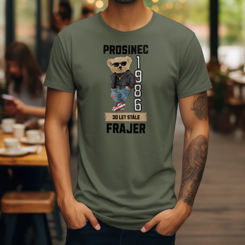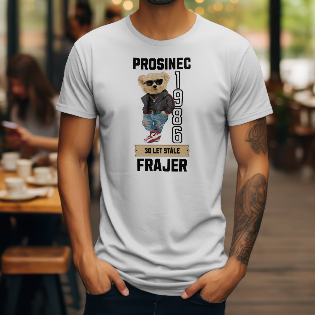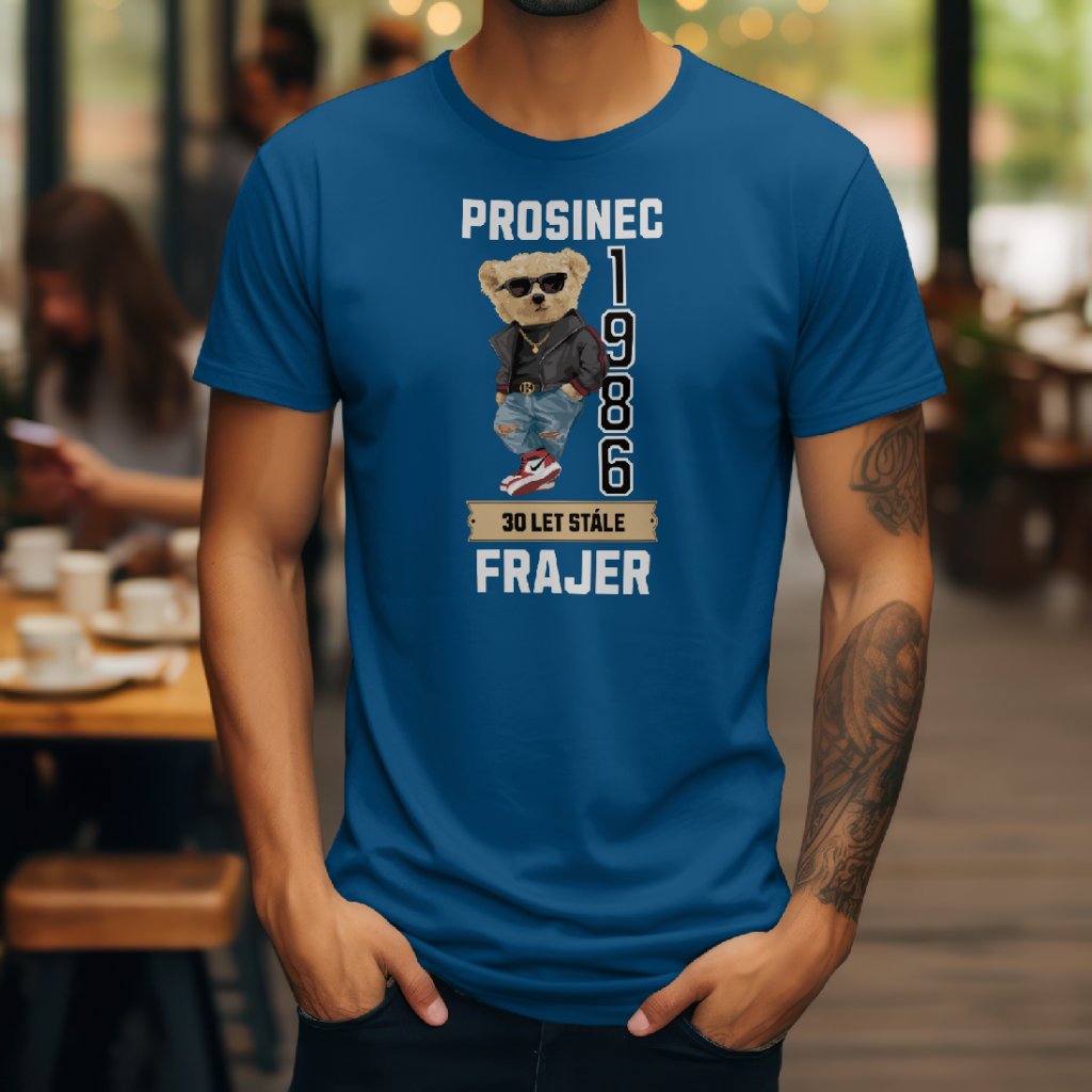 Ukažte všem, kdo je tady skutečný frajer! Toto unikátní pánské narozeninové tričko s motivem stylového medvídka v kůži je ideálním dárkem pro muže, kteří neztrácejí šmrnc ani s přibývajícími lety. Díky možnosti personalizace měsíce, roku a věku získáte originální kousek ze 100% bavlny, který bude oslavenec hrdě nosit.