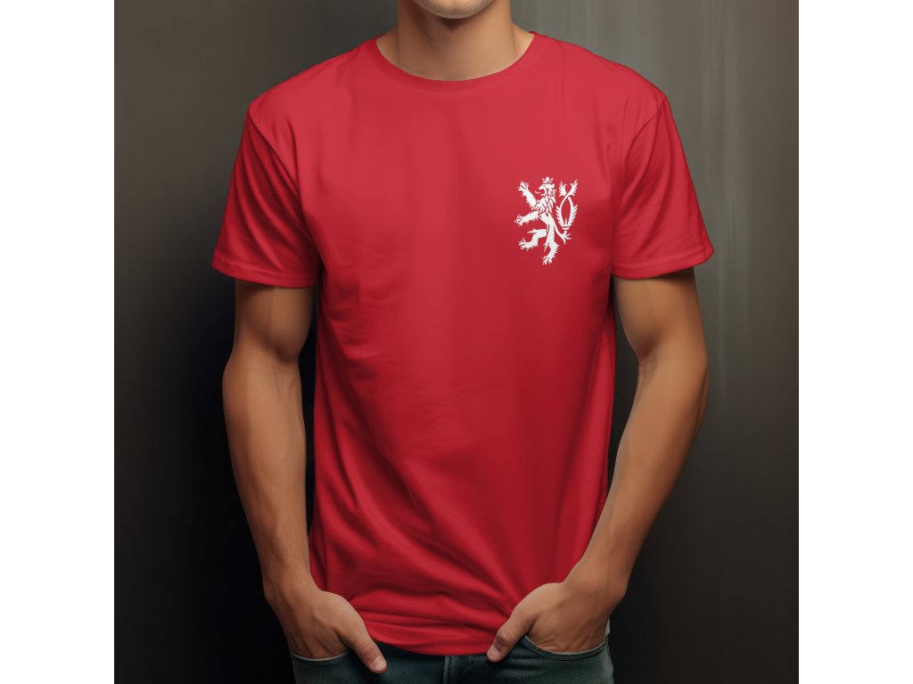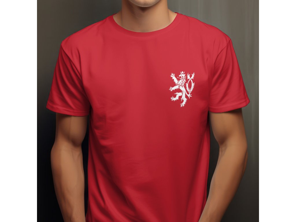 Lev je proveden v jedné barvě, která skvěle kontrastuje s výrazným podkladem trička. Jedná se o heraldickou siluetu dvouocasého lva s korunou. Vzhledem k malé velikosti a umístění na boku působí motiv velmi elegantně a nenápadně, na rozdíl od velkých tisků přes celou hruď. Tričko je ideální pro ty, kteří chtějí ukázat svůj vztah k České republice decentně – skvělé na sportovní akce, ale i pro každodenní nošení.