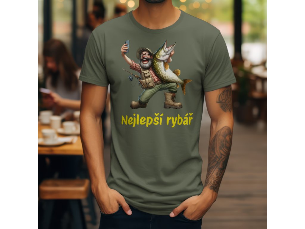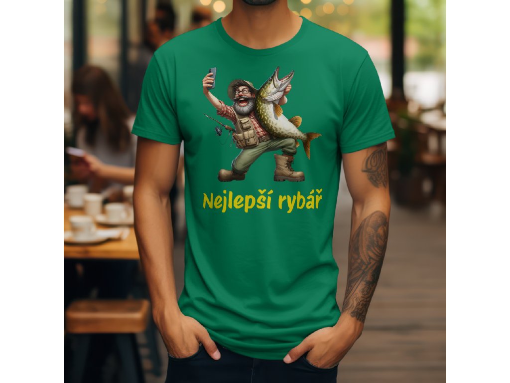 Hledáte originální a vtipné tričko pro sebe nebo perfektní dárek pro muže, který se pyšní titulem nejlepší rybář? Toto pánské tričko s unikátním potiskem a textovým mottem je přesně to, co potřebujete. Vtipný design karikatury šťastného rybáře s velkou štikou a mobilním telefonem je moderní a stylový způsob, jak vyjádřit nadšení pro rybolov.