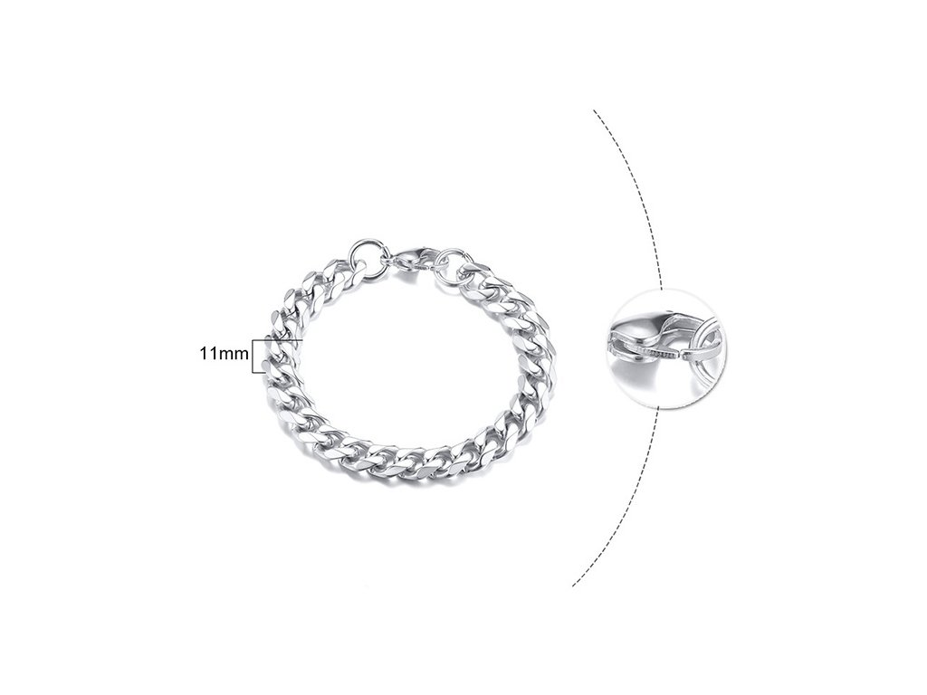 - Design: Náramek má výrazný kubánský vzor, který působí robustně a mužně. Šířka jednotlivých článků je 11 mm, což dodává náramku na objemu.