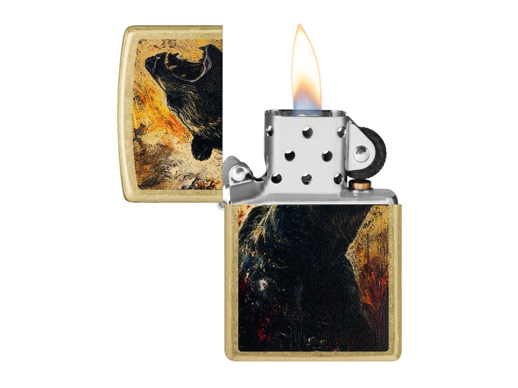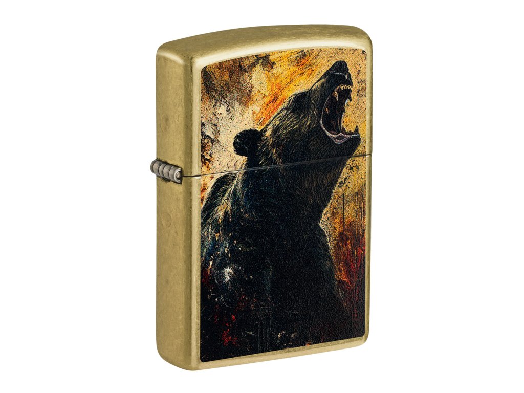 Dominantním prvkem je potisk řvoucího medvěda grizzlyho, provedený technologií Color Image. Design je inspirován akvarelovou malbou, což mu dodává uměleckou a dynamickou texturu. Medvěd, symbol síly a divokosti, je zachycen ve své majestátnosti a s dravým výrazem, což činí zapalovač mimořádně výrazným a jedinečným.