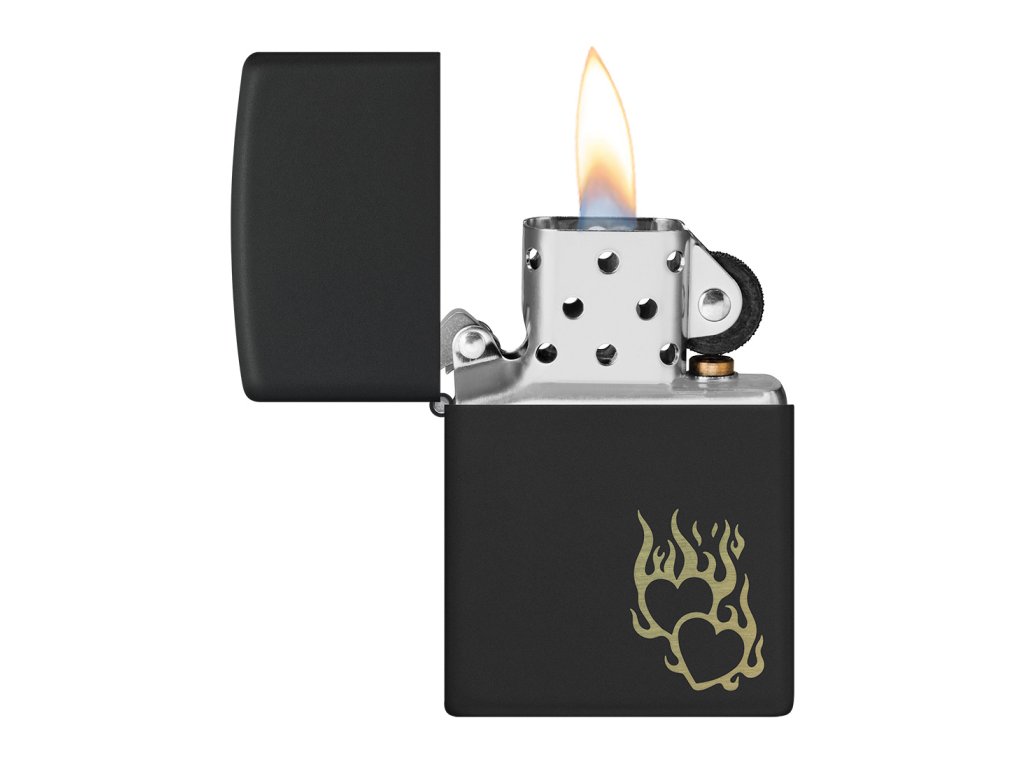Tento originální Zippo zapalovač v provedení klasického tvaru a s matným černým povrchem Black Matte je perfektním způsobem, jak vyjádřit planoucí lásku. Jeho jedinečný design, vytvořený laserovým gravírováním, zobrazuje dvě planoucí srdce hnízdící na povrchu, obklopená ohnivými plamínky. Tento romantický a silný motiv z něj dělá ideální dárek pro milovanou osobu, ať už na Valentýna, výročí, nebo jen tak.