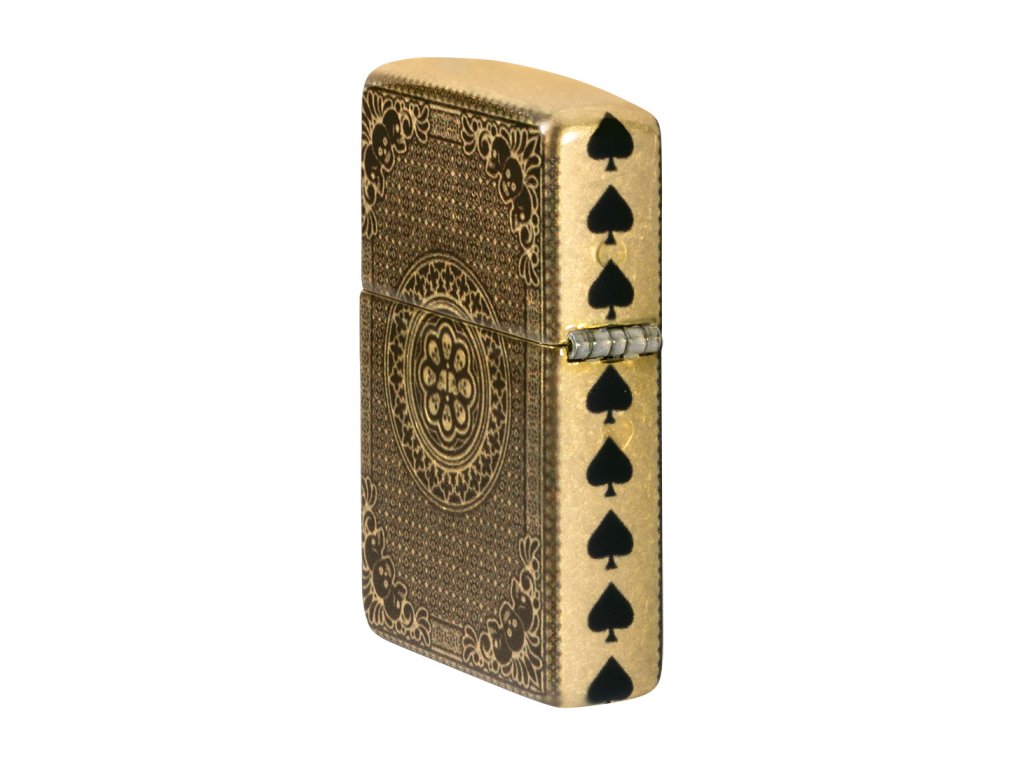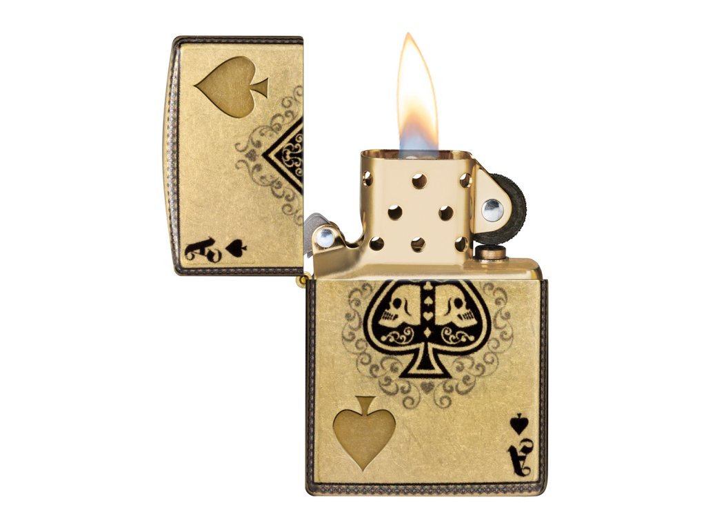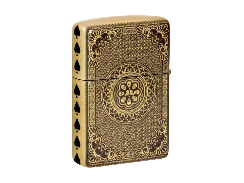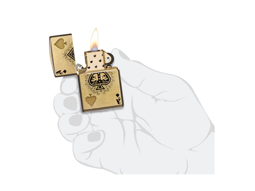 - Design: Zapalovač je zdobený motivem eso pik, které je zdobeno dvěma lebkami. Tento klasický motiv z karetních her je zde interpretován v moderním a luxusním stylu. Detailní rytí a kontrastní barvy vytvářejí působivý 3D efekt.
